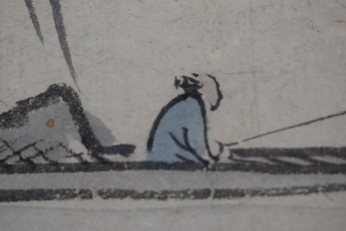 【真作】【参考】福田半香 江戸後期の南画家。遠江見附生。本居宣長の門人福田真直の子。名は佶、字は吉人、通称を恭三郎、別号は暁斎・磐湖・暁夢・松蔭山房等。はじめ掛川藩の絵師村松笠斎に、のち江戸に出て匂田台嶺、渡辺崋山に画を学び、山水を能くした。元治元年(1864)歿、61才。