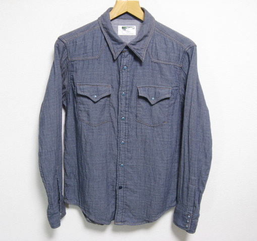 - 美品 BASECONTROL ベースコントロール(株ワールド) デニム風 二重ガーゼ ウエスタンシャツ Mサイズ