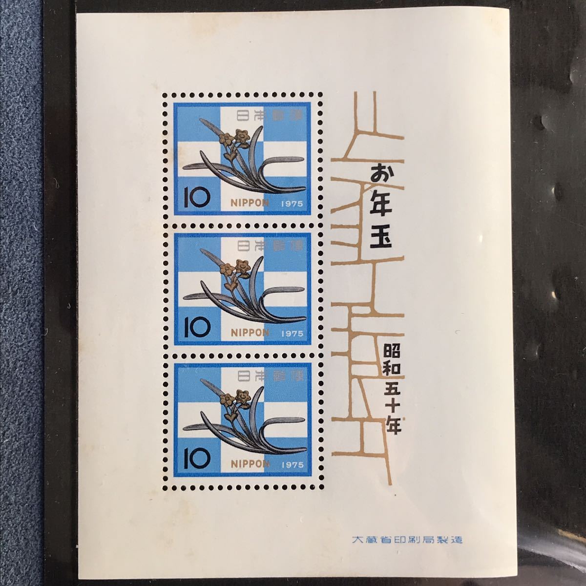 - 年賀切手「昭和50年 お年玉切手 小型シート 1枚」10円×3★1975年発行・長期保管品