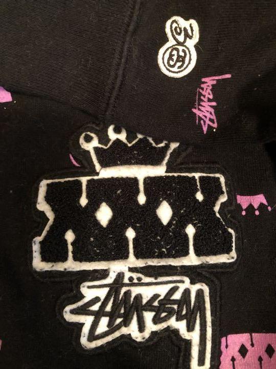 - ステューシィ ワッペン ロゴ総柄 パーカー