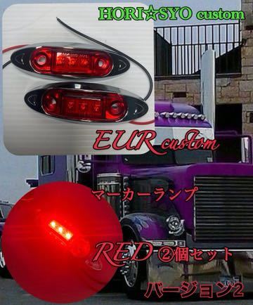 - ②本場 マーカーランプ ユーロ LED クローム メッキ レッド 赤 2個セット 本場 トラック デコトラ カスタム