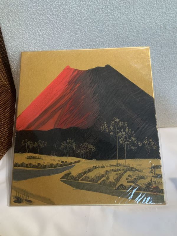 - ◆真作 赤富士 色紙画 蘭山◆A-1866