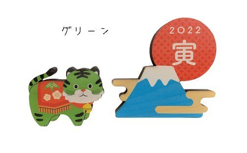 - 送料無料!木製 2022年 干支オーナメントセット◆オブジェ◆置物◆トラ とら 虎 寅◆国産ヒノキ使用◆正月◆ハンドメイド◆グリーン◆