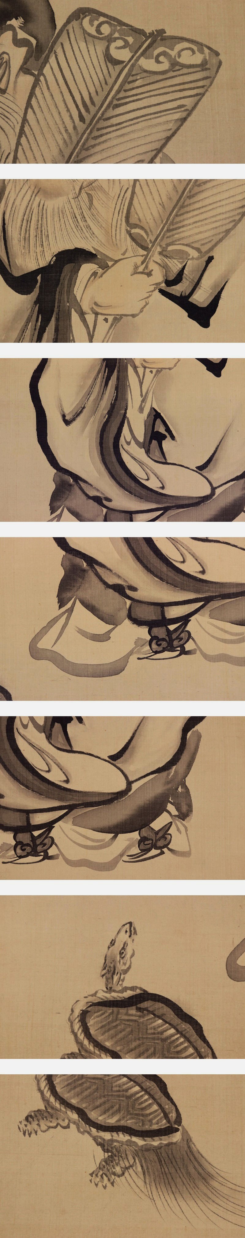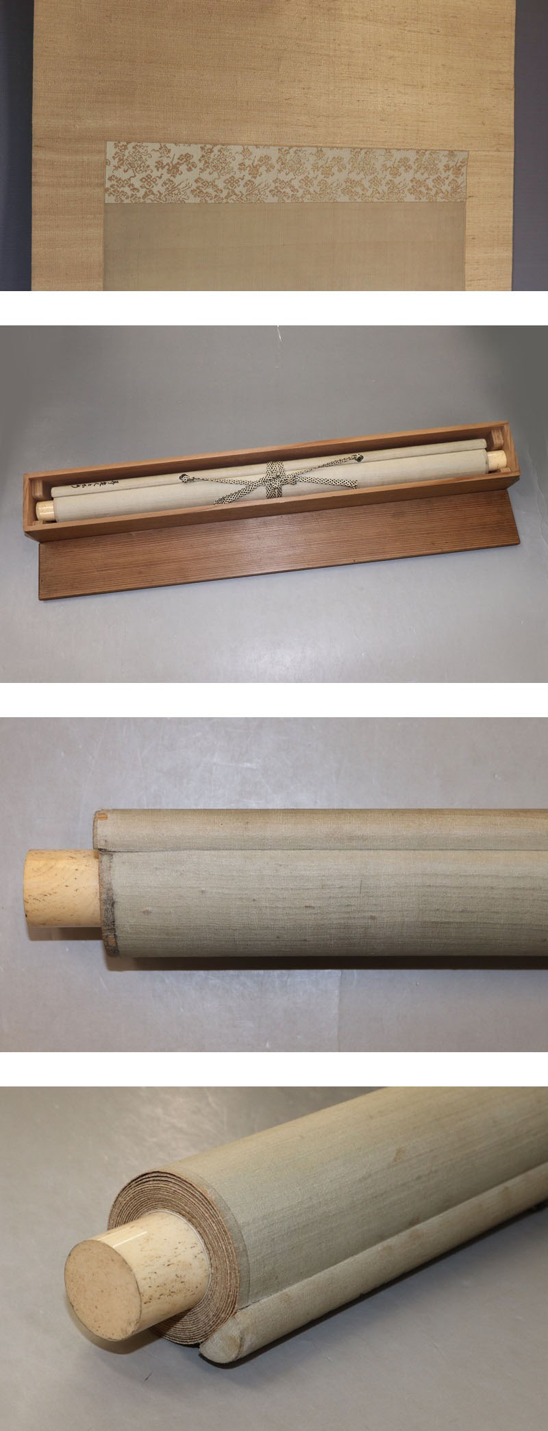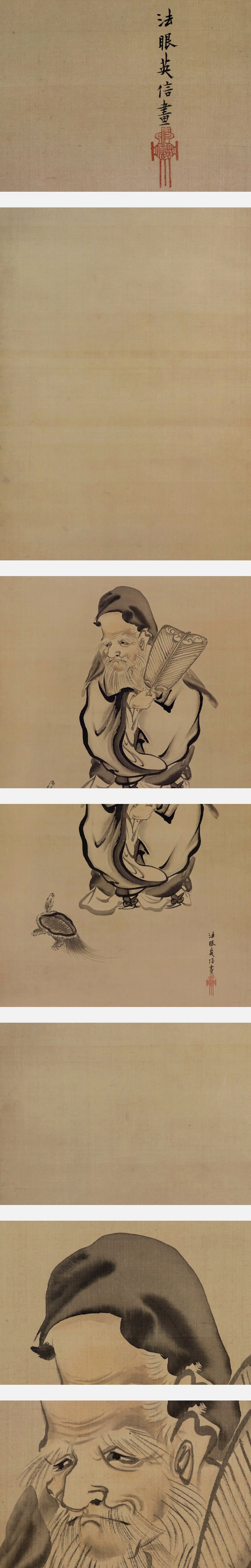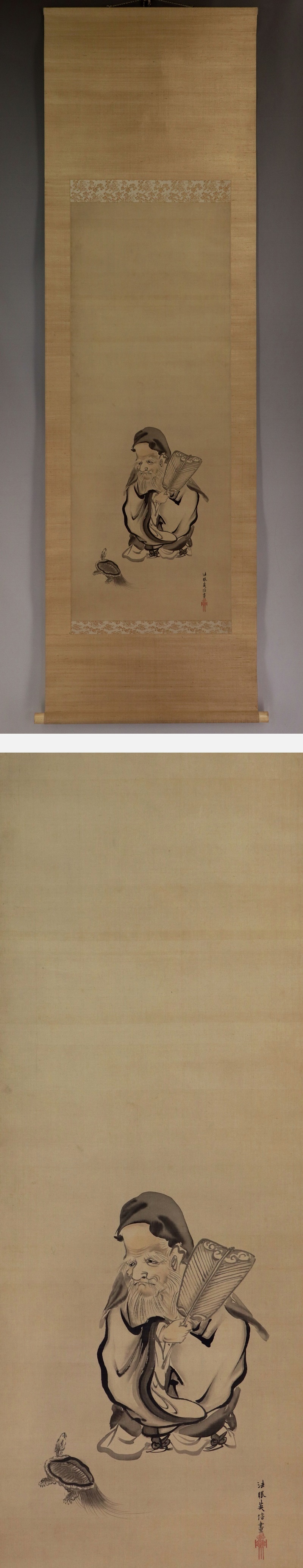 - 【真作】狩野英信【福禄寿】◆絹本◆合箱◆掛軸 v11099