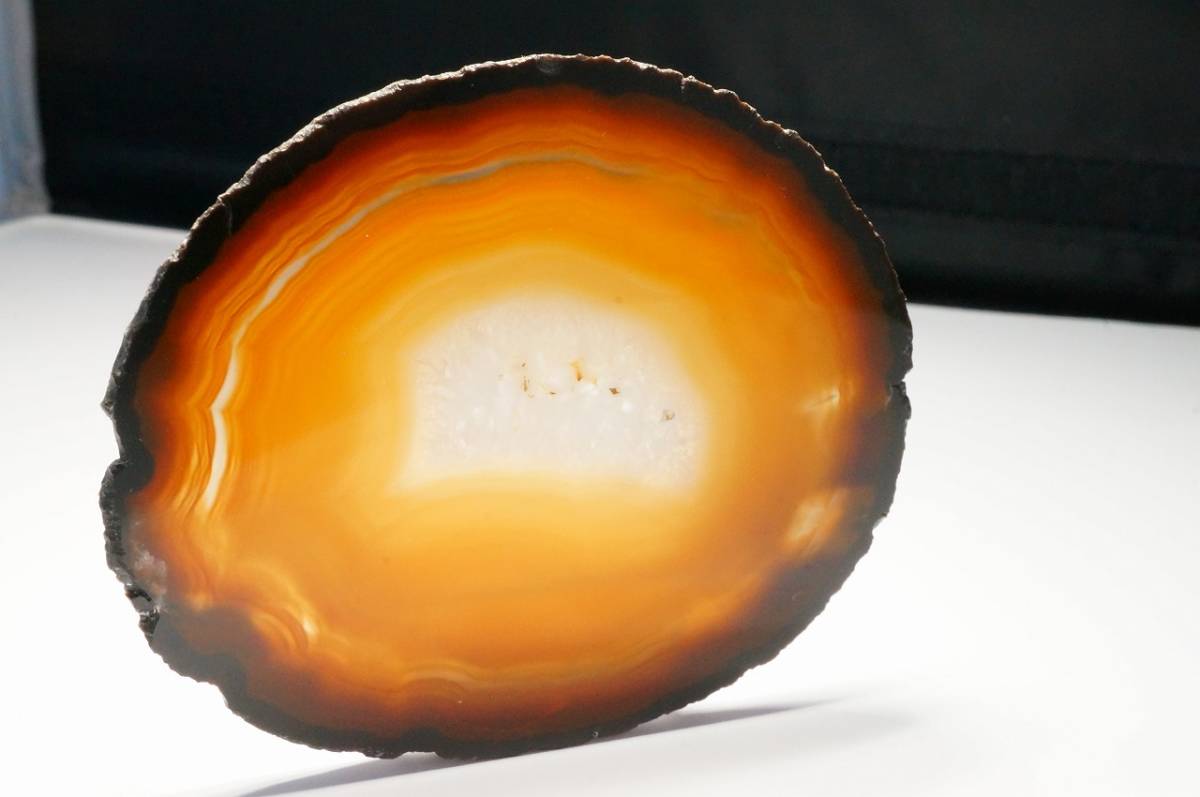 > 【即決特別価格!早い者勝ち!】希少!縞模様が綺麗な上質ブラジル産瑪瑙・メノウ・めのう・メノー・ピクチャーメノー板原石コースター32g②