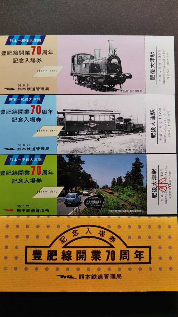- 0130-166【国鉄記念きっぷ】豊肥線開業70周年記念入場券 肥後大津駅 昭和59年【3枚組】