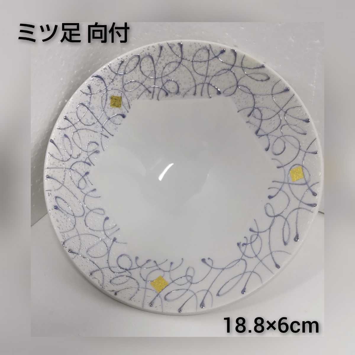 - 石29)和食器 2枚 ミツ足 向付 白 ブルー 乱線 和食 料亭 旅館 割烹 懐石 居酒屋 小料理店 飲食店 業務 210131(2)
