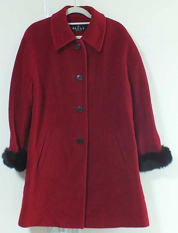 - 古着☆BLULY☆ファー付きロングコート☆赤長袖☆TOKYO STYLE