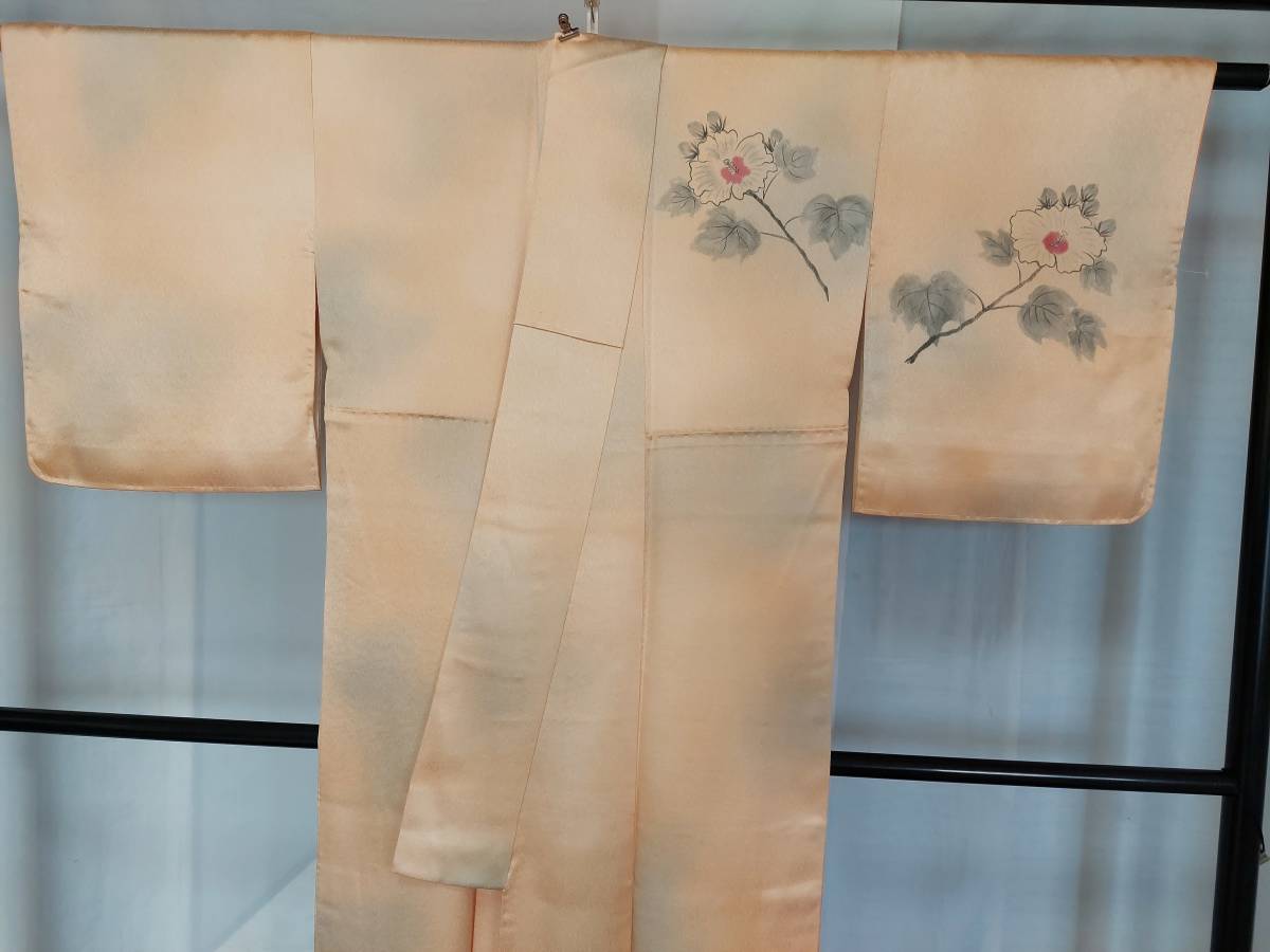 - 【桐輪】訪問着☆送料無料*ハイビスカスの花*仕付け糸付{正絹*手描き染*袷*訪問着}*丈163.裄64*手描き.暈し染のハイビスカスの花*№3224