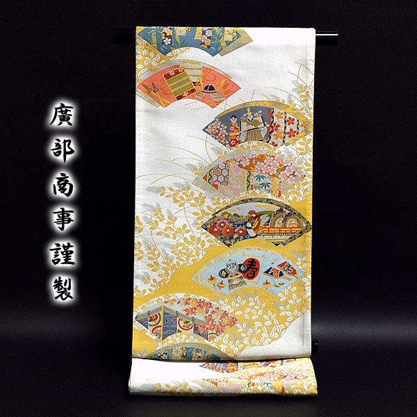 > [和楽屋] ■京都西陣織「廣部商事謹製」 扇面 玩具文様 草花 正絹 袋帯■