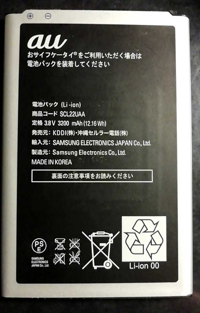 > 【中古】au純正SCL22UAA電池パックバッテリー【充電確認済】対応機種(参考)au SCL22/ドコモ GALAXY Note3 SC-01F/N9000
