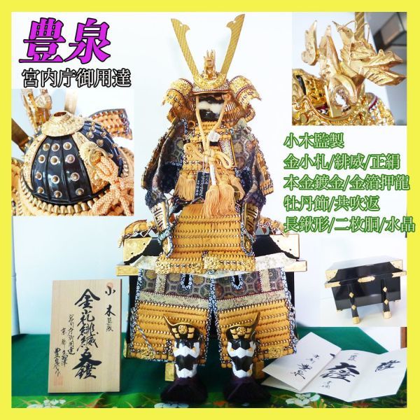 > 新品 宮内庁御用達 最高級 京都 島津豊泉作 小木監製 大鎧 戦国武将鎧兜 六分の一 金小札緋縅正絹縅牡丹飾長鍬形二枚銅 水晶玉 本金鍍金_46