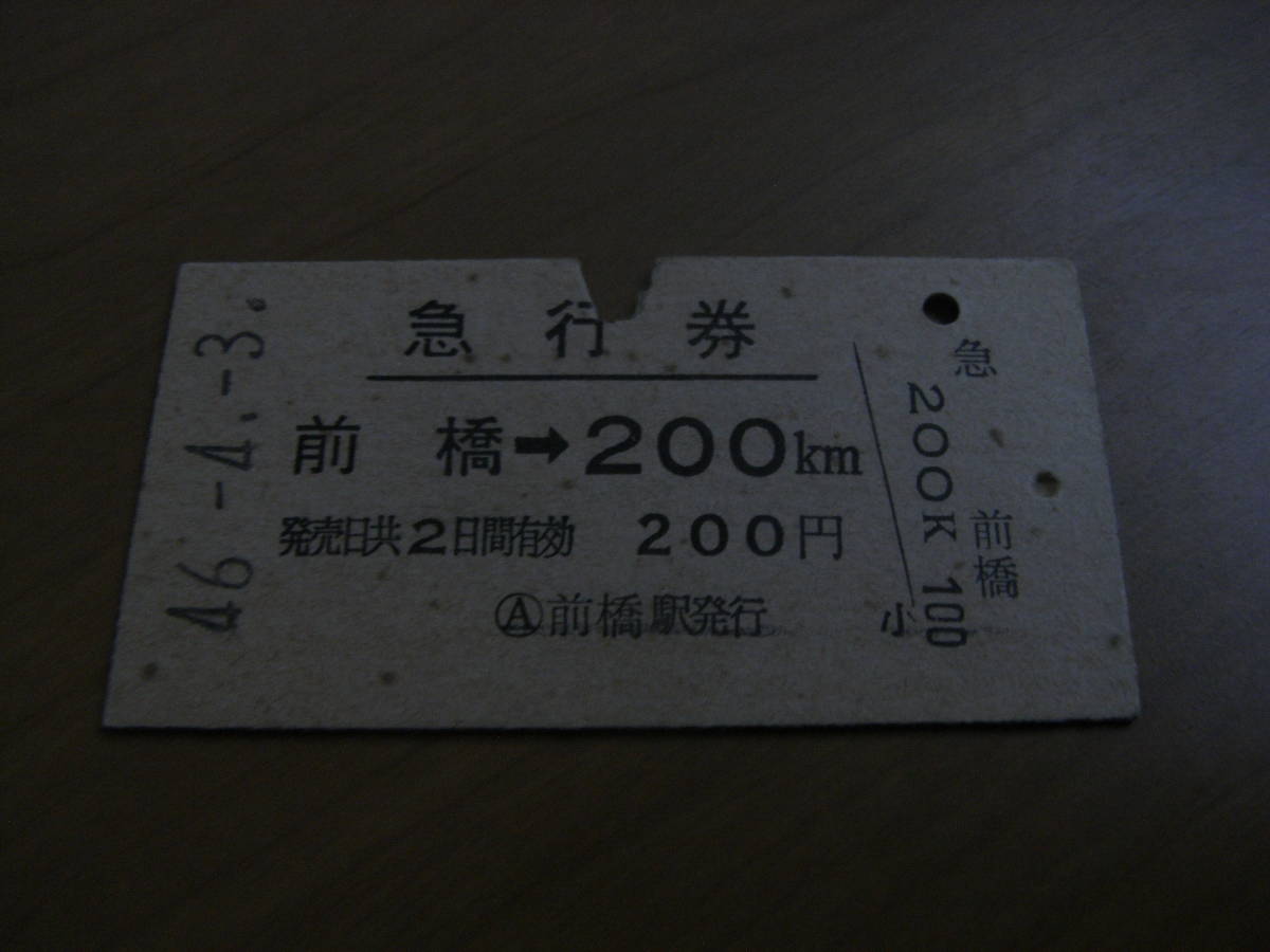 - 急行券 前橋→200km 昭和46年4月3日 前橋駅発行