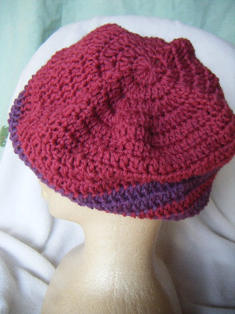 - 春秋冬*ベレー帽風*手編男女兼用*ダークローズ色*アクセントライン/紫とピンクぽい紫の混ざり 66