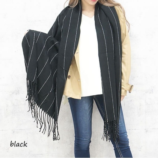 - RONDELBLACK ストール ショール ストライプ 200×70cm ブラック