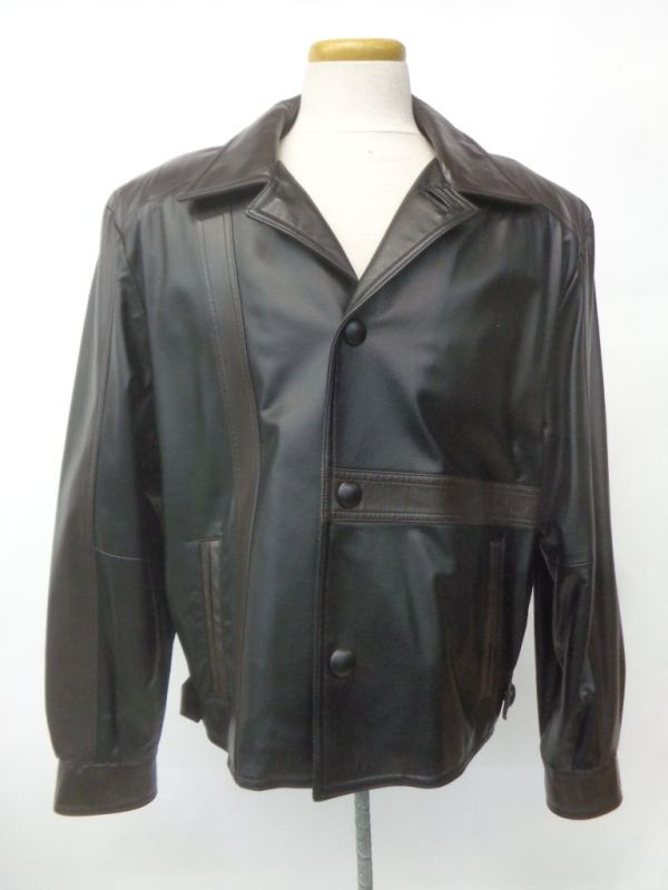 - メンズ ブラック&ブラウン レザー・ジャケット アメリカンサイズ40-42