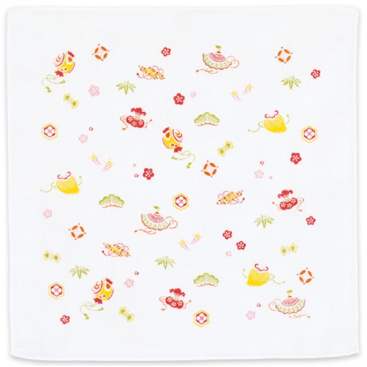 - ガーゼはんかち「宝づくし アカ」高い吸水性 優しい肌触り M098-60051-153
