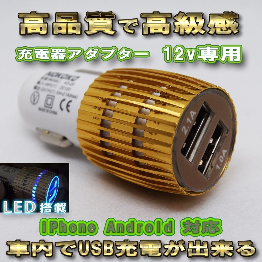 - 高級感 【ゴールド】 USB 2ポート 充電器アダプター シガー ソケット ライター