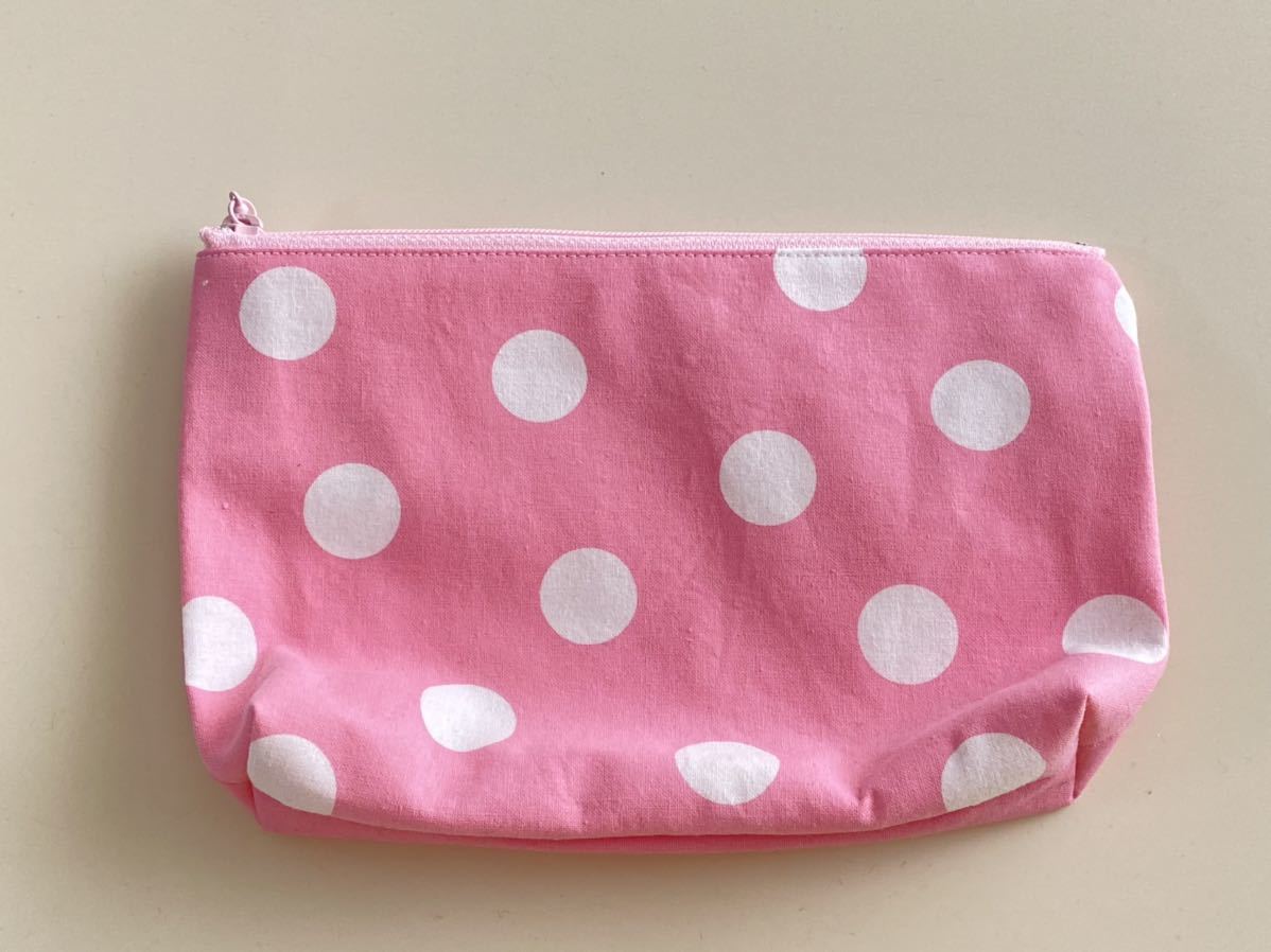 - ハンドメイド★ファスナーポーチ マチ付き ドット ピンク(1112)値下げ