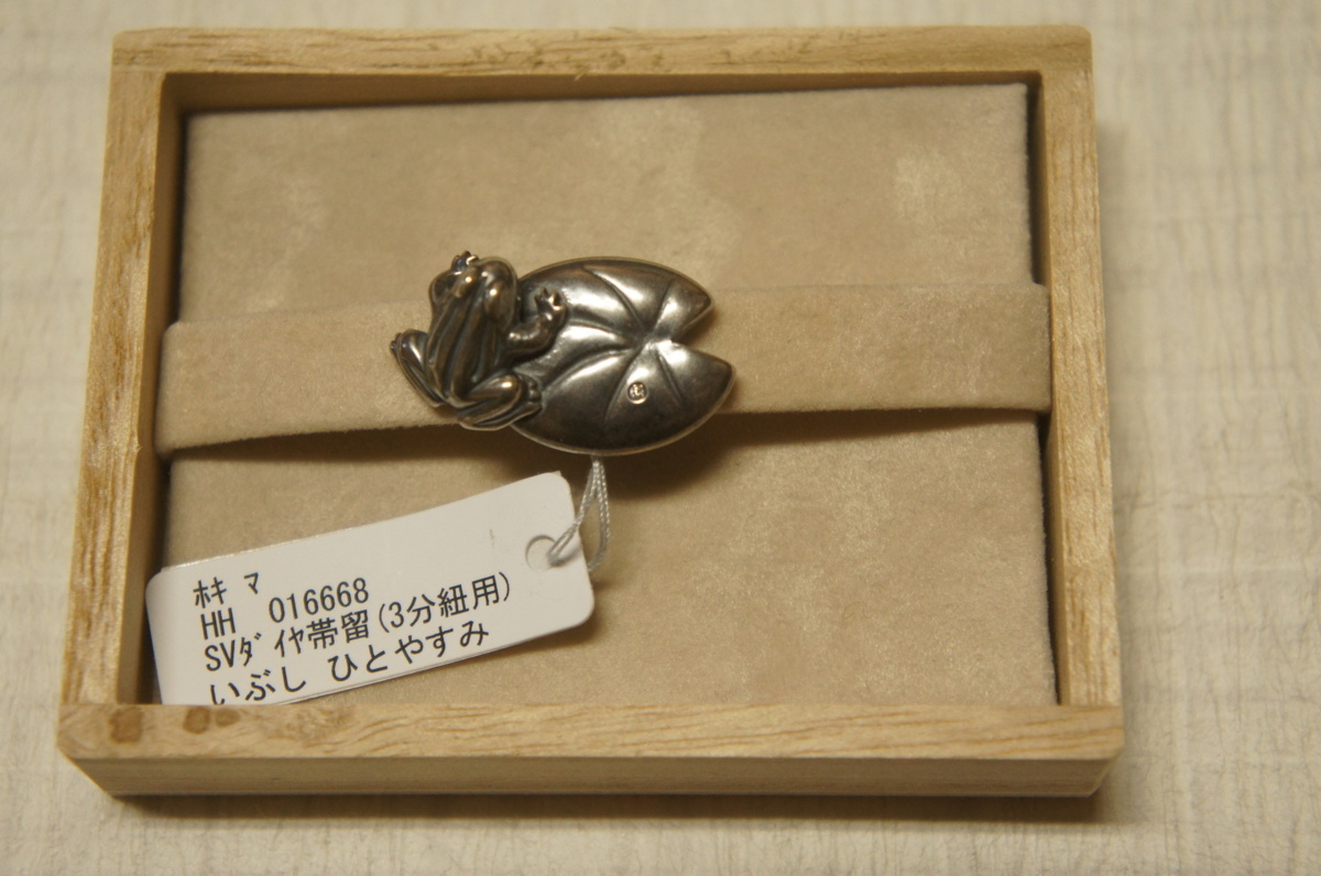 - 特選新品シルバーダイヤ入りカエル帯留3分紐用[E12100]