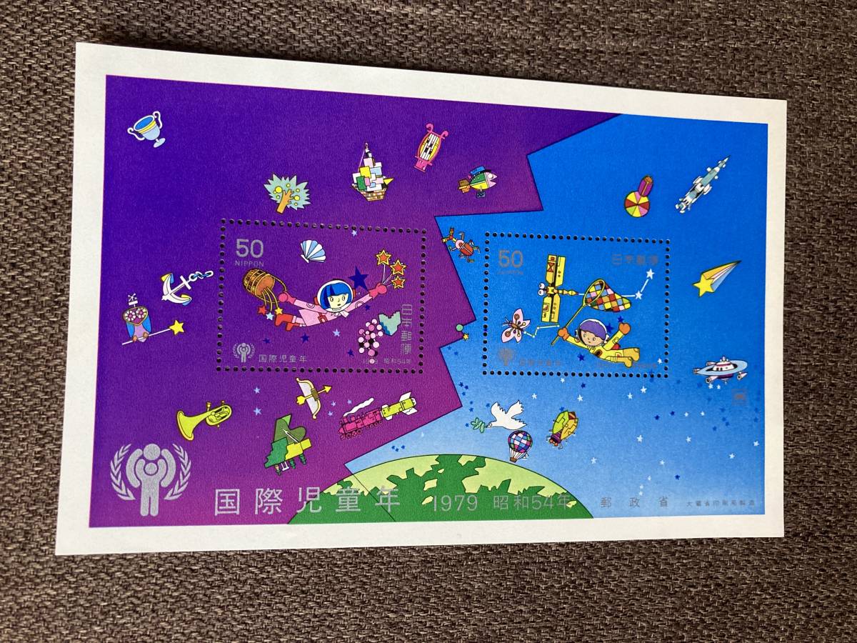 > ★未使用 国際児童年 宇宙遊泳をする女の子と男の子 小型 切手シート 50円 2枚 1979年 昭和54年 記念切手 日本郵便 郵政省