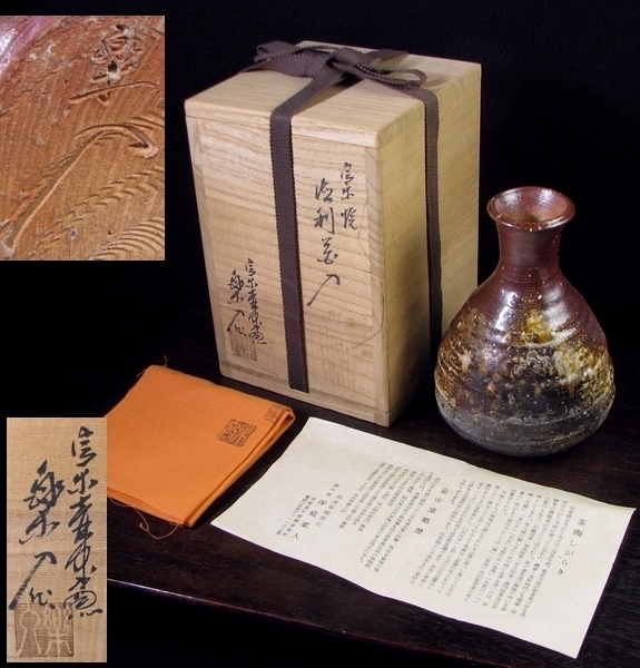 - 信楽茶陶窯 保庭楽入造 徳利 共箱・共布 美品/17e34