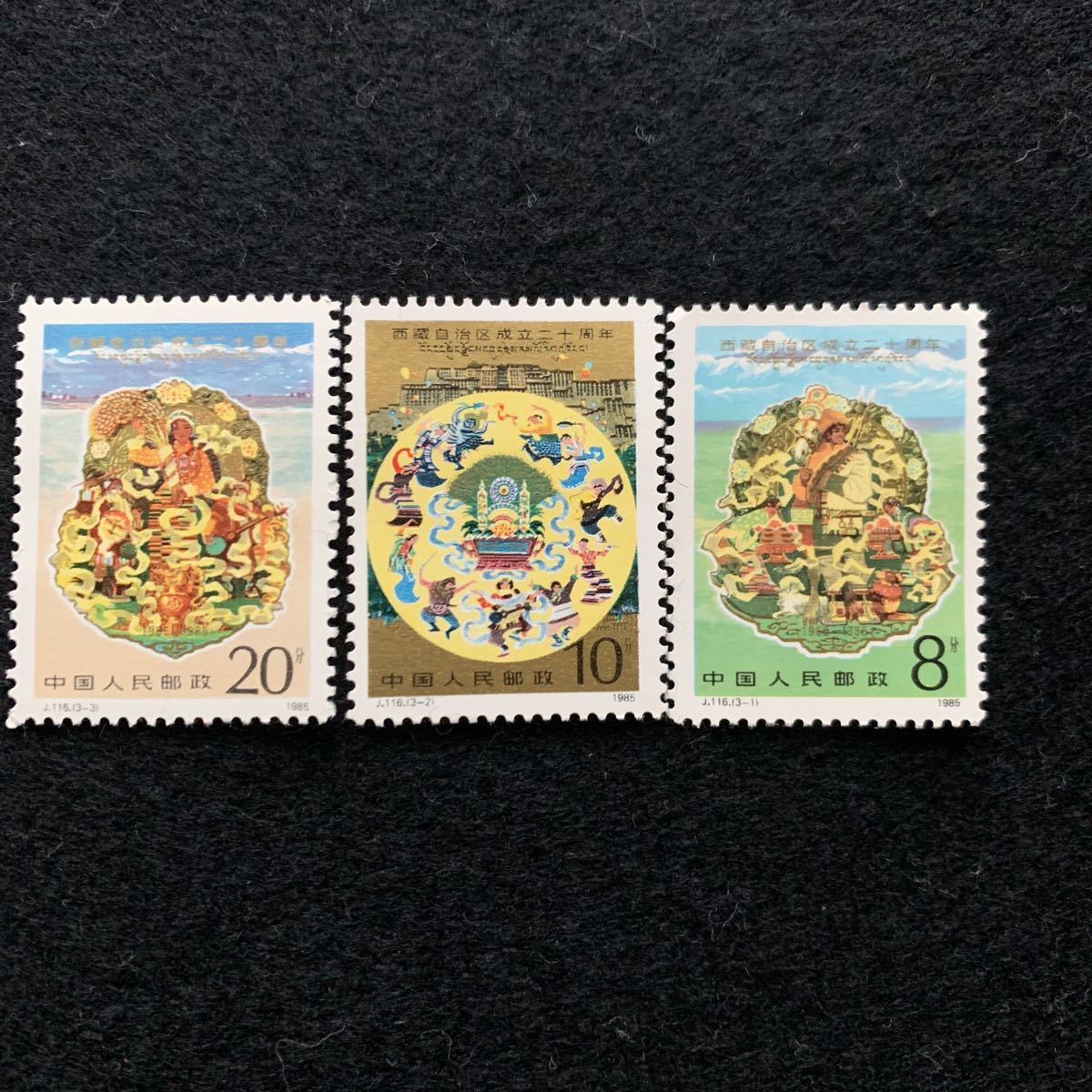- 中国切手 西蔵自治区成立二十周年 三枚 未使用