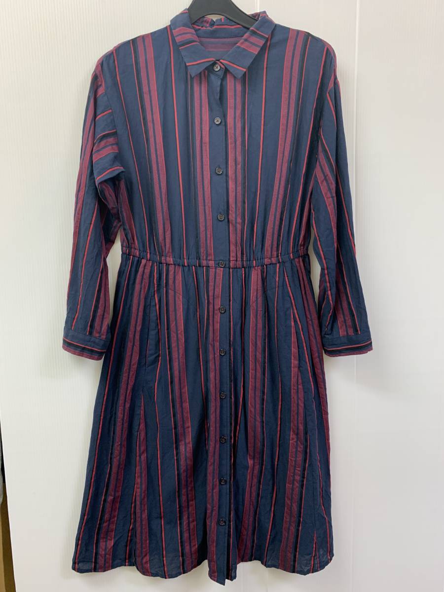 - x954★glitgern 長袖ストライプ柄シャツワンピース ポケット2 サイズM★春