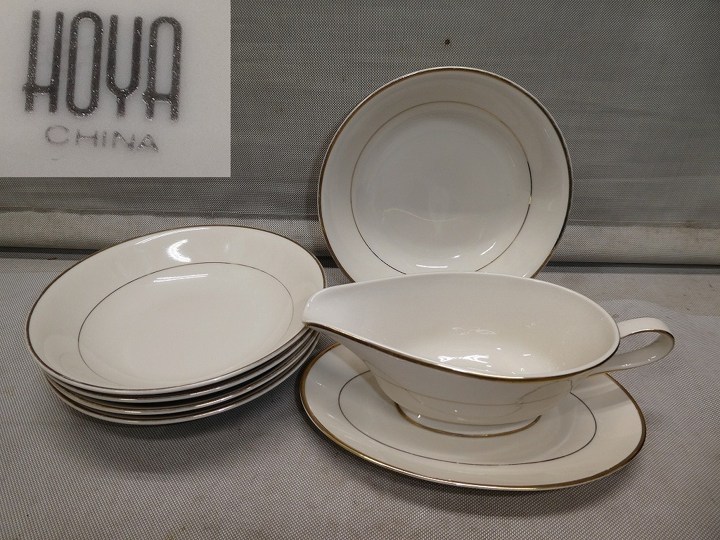 - ●HOYA CHINA 保谷 金縁 カレーポット カレー皿5枚セット ソースポット シチュー皿●レトロ