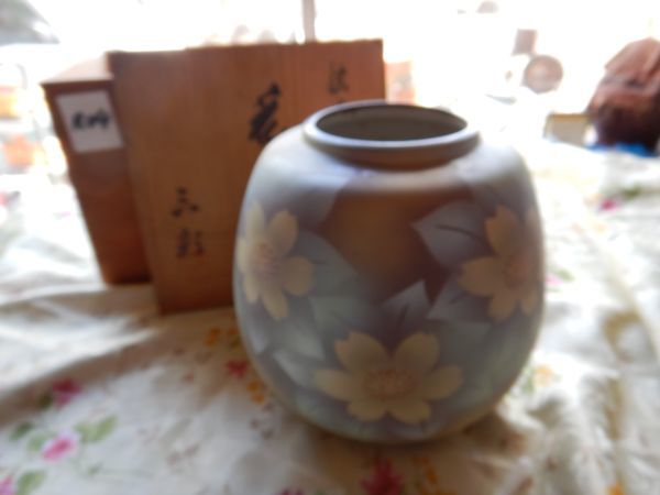 > 壺つぼR04 信楽焼 花瓶 三彩 大体21h21cm 24.5x24.5x22.5cm箱入り