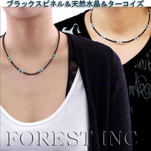 - ブラックスピネル ターコイズ ネックレス全長約44cm〔n5-16-1〕