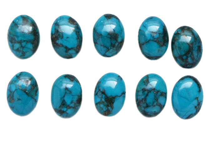 - 天然石 マトリックス(ネット模様)トルコ石ルース・ストーン 18x13mm 10石セット