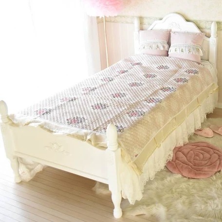 - 特価!プリンセス姫系ホワイトクリームレッドローズ薔薇のベッドカバー