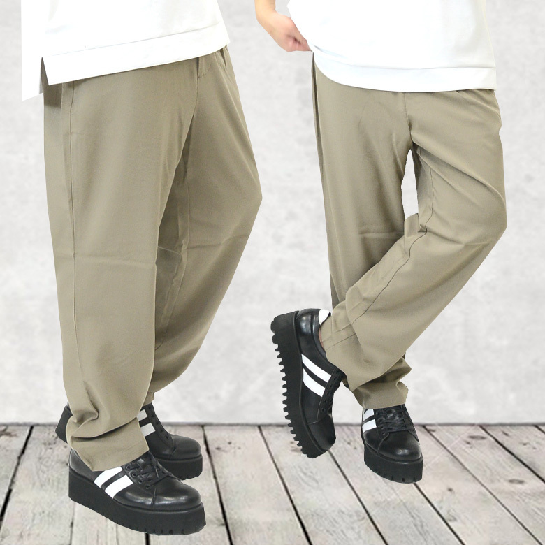 - とろみ素材テーパードワイドパンツ50391ゆったりシルエット新品グレーベージュM