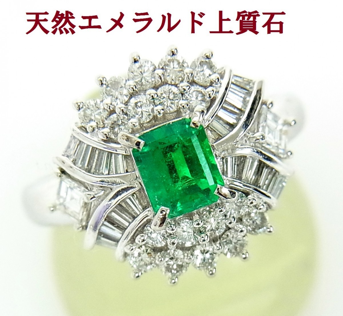> 色も質も特級石/0.63ct天然エメラルド/天然ダイヤモンド取巻/プラチナ製リング/卸価格/送料無料/商品動画あり
