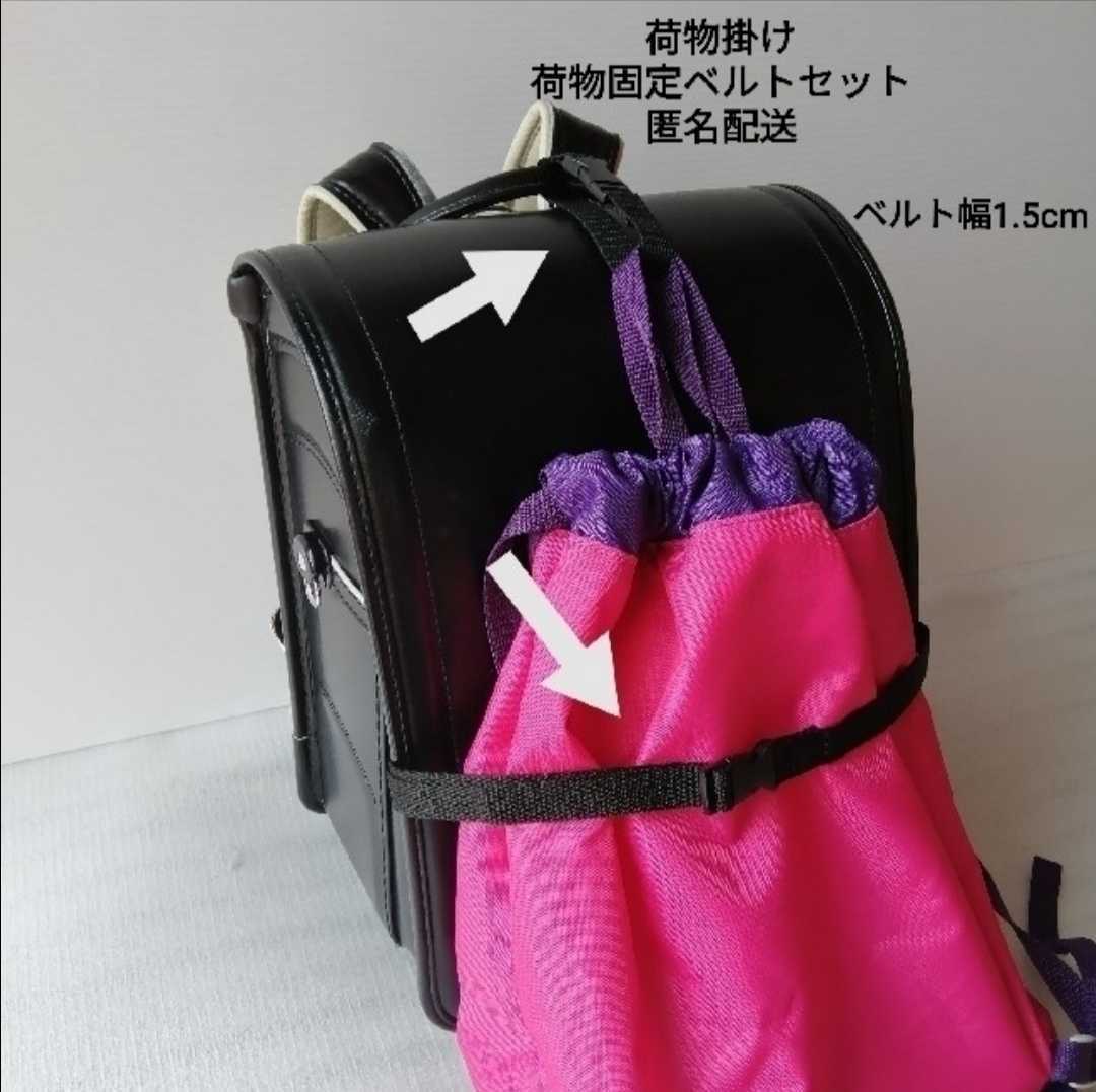 - 黒 ベルト幅1.5cm★手荷物掛けベルトと固定ベルトのセット★ランドセルに上履き袋・体操着袋・ピアニカも掛けれる