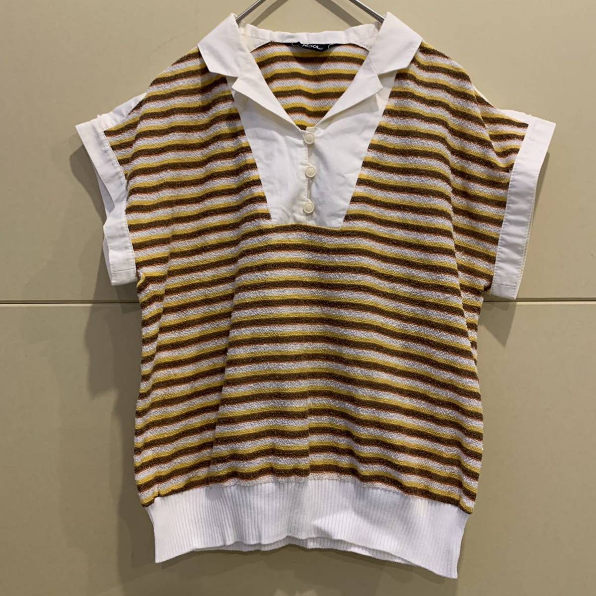 - 美品 DUSOL レトロトップス 半袖 ヴィンテージ ボーダー 襟付きトップス レディース 個性的 365