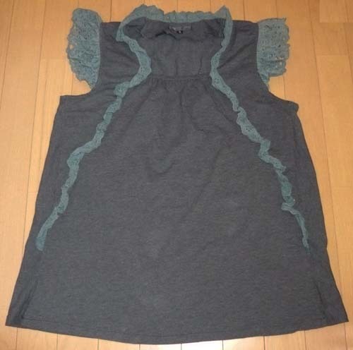 > ノースリーブ◆チュニック◆ゆったりXLサイズ☆濃グレー☆ストレッチ素材でらくらく【ユーズド】袖レース☆送料185円