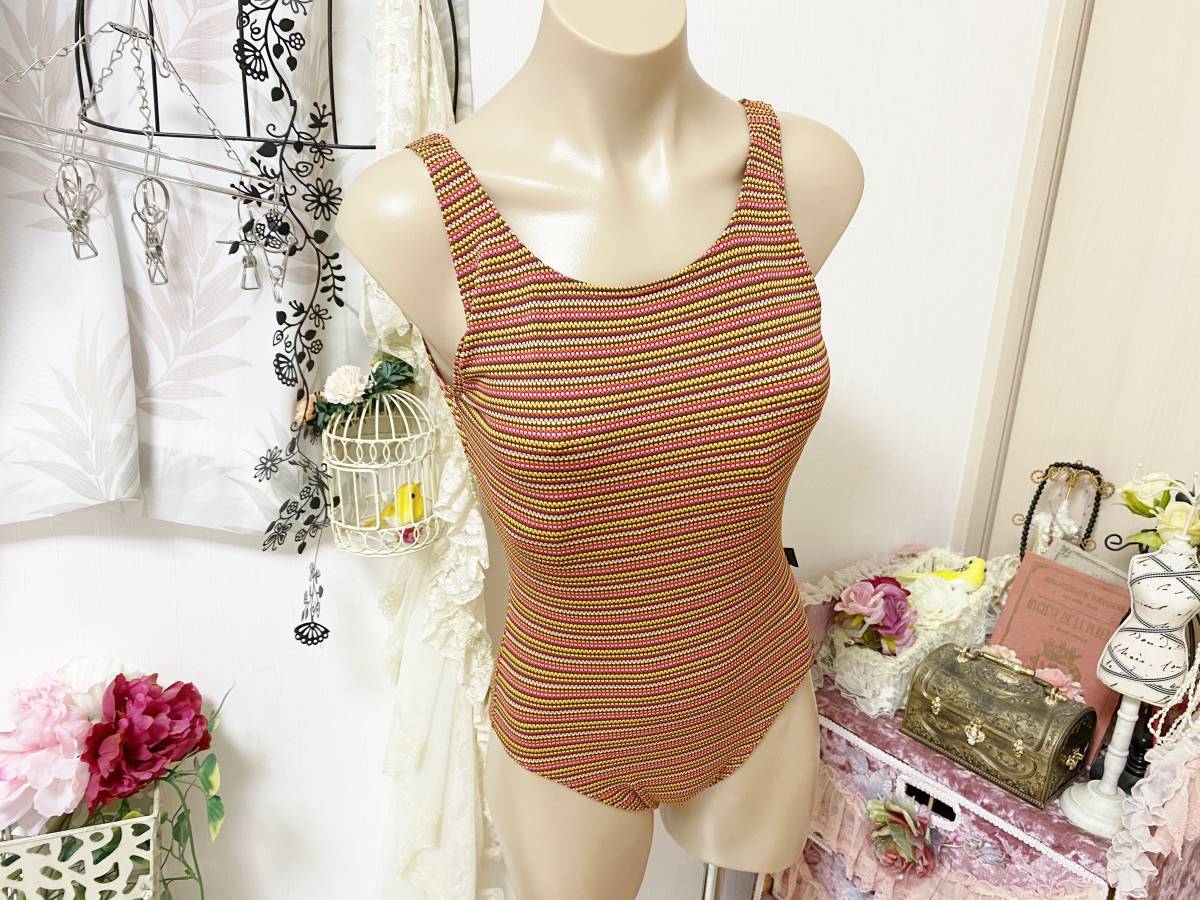 - ●レディス水着 O●アリーナ【arena】デサント*日本製◆ニット調*ワンピース水着:MIXボーダー