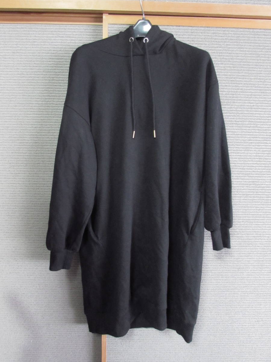 > ★レディースロングパーカー厚手 黒色 Lサイズ 中古送料無料★GU商品