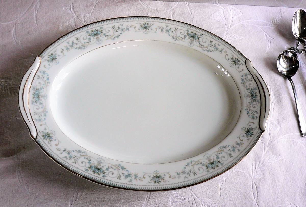 - 陶磁器)87歳断捨離 英国で見つけた里帰 明治時代貴重新品大皿 ノリタケ輸出用大型オーバル型大皿 最大35.5㎝