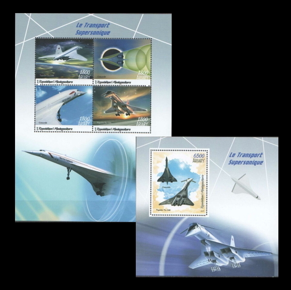 - ■マダガスカル切手 2019年 超音速機 ツポレフ / コンコルド シート+4種シート