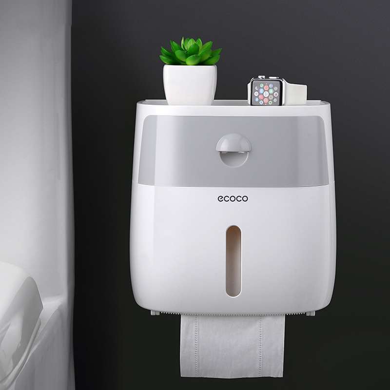 - 3737 トイレットペーパーホルダー グレー ペーパータオル ホルダー 棚付き 防水 トイレットペーパー トイレ 棚 ペパーホルダー