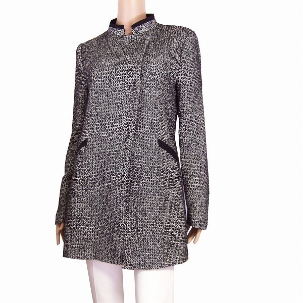 > M美品/ザラ ZARA ツイード素材コート/ジャケット 大きいサイズ 表記USA XL(13号相当) 黒/ブラック 比翼仕立 秋冬向け アウター レディース