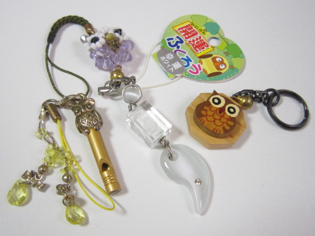- ふくろう レトロ お土産 ご当地 ストラップ キーホルダー 4点セット フクロウ 梟