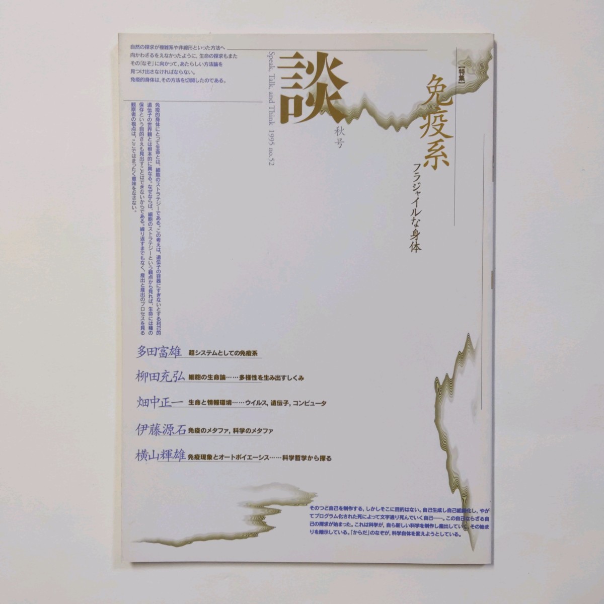 - 談 1995 no.52 免疫系 フラジャイルな身体 多田富雄 柳田充弘 畑中正一 伊藤源石 横山輝雄 <ゆうメール>