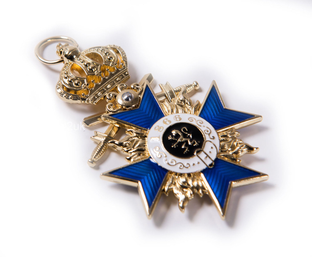 > 【送料無料】WWI WW1 ドイツ バイエルン王国 剣付き 4級戦功章 王冠 剣付き メリットクロスメダル リボン付き レプリカ 複製 新品