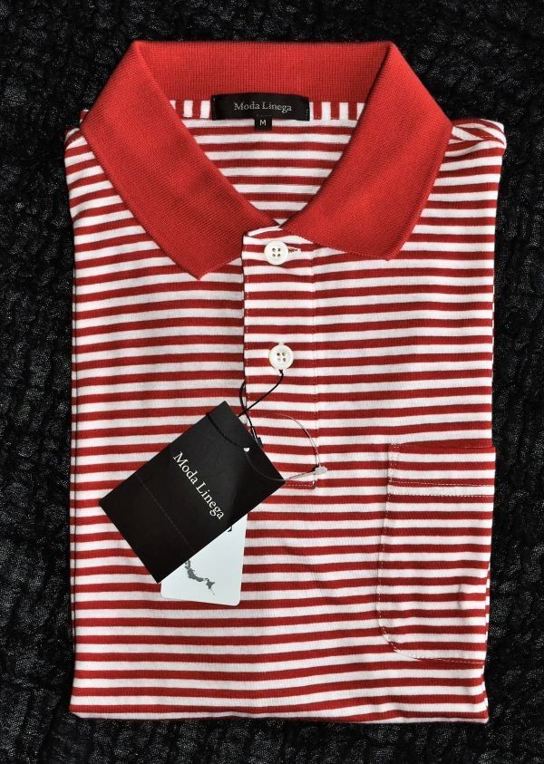 - ★新品★モーダリネガ★MODA LINEGA★お洒落な白赤ボーダーの着心地の良い半袖ポロシャツM