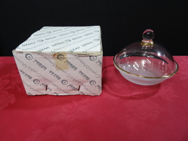 > 未使用 マツガオカクリスタル 小容器 ふた付き クリスタル ガラス すりガラス サイズ約直径11cm高さフタなしで3.5cm ekt5-17