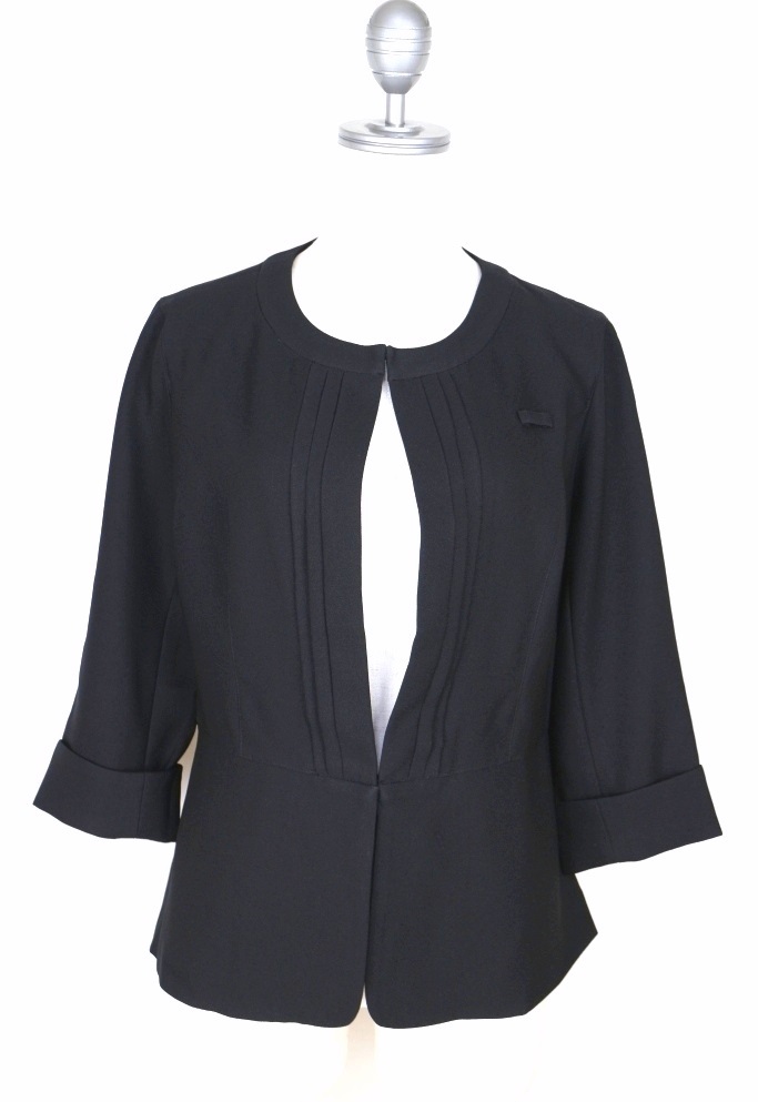 - ■新品■送料無料■9号 M 春夏 ノーカラー七分袖ジャケット ブラック 黒 ビジネス 制服 ユニフォーム 受付 エステ サロン マッサージ